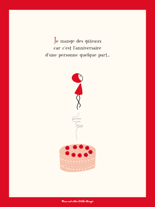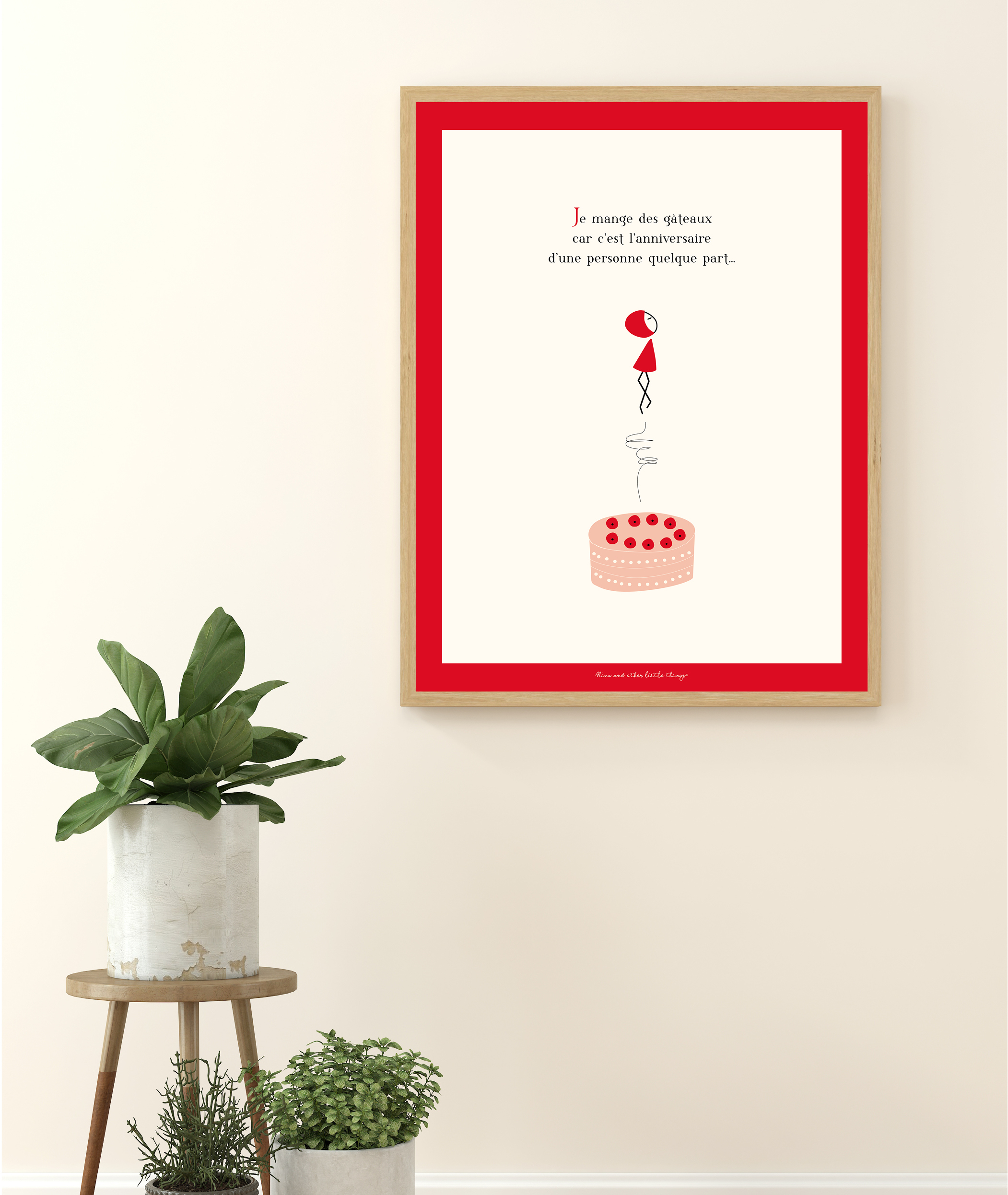 Affiche » Je mange des gâteaux car c’est l’anniversaire d’une personne quelque part… » 28,00 € – 38,00 € Select options