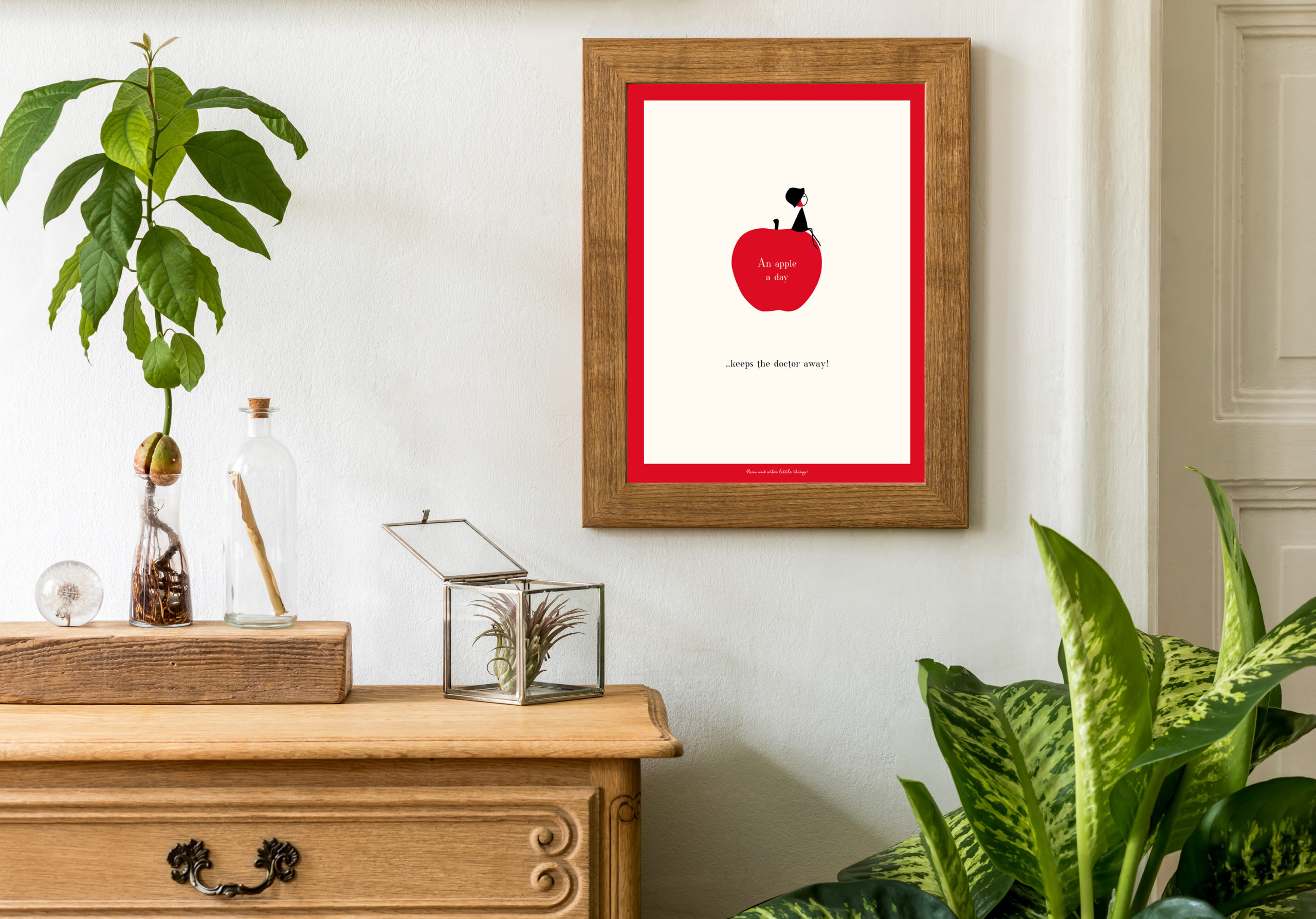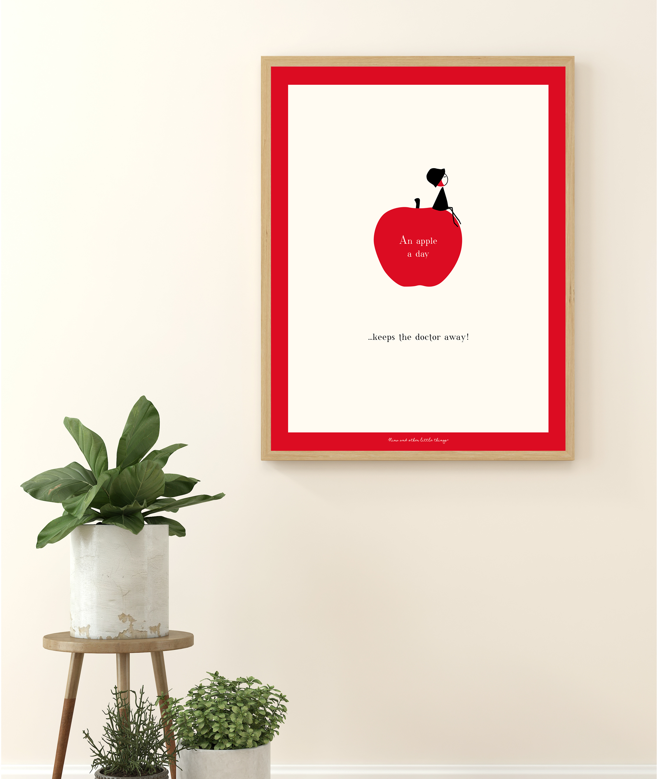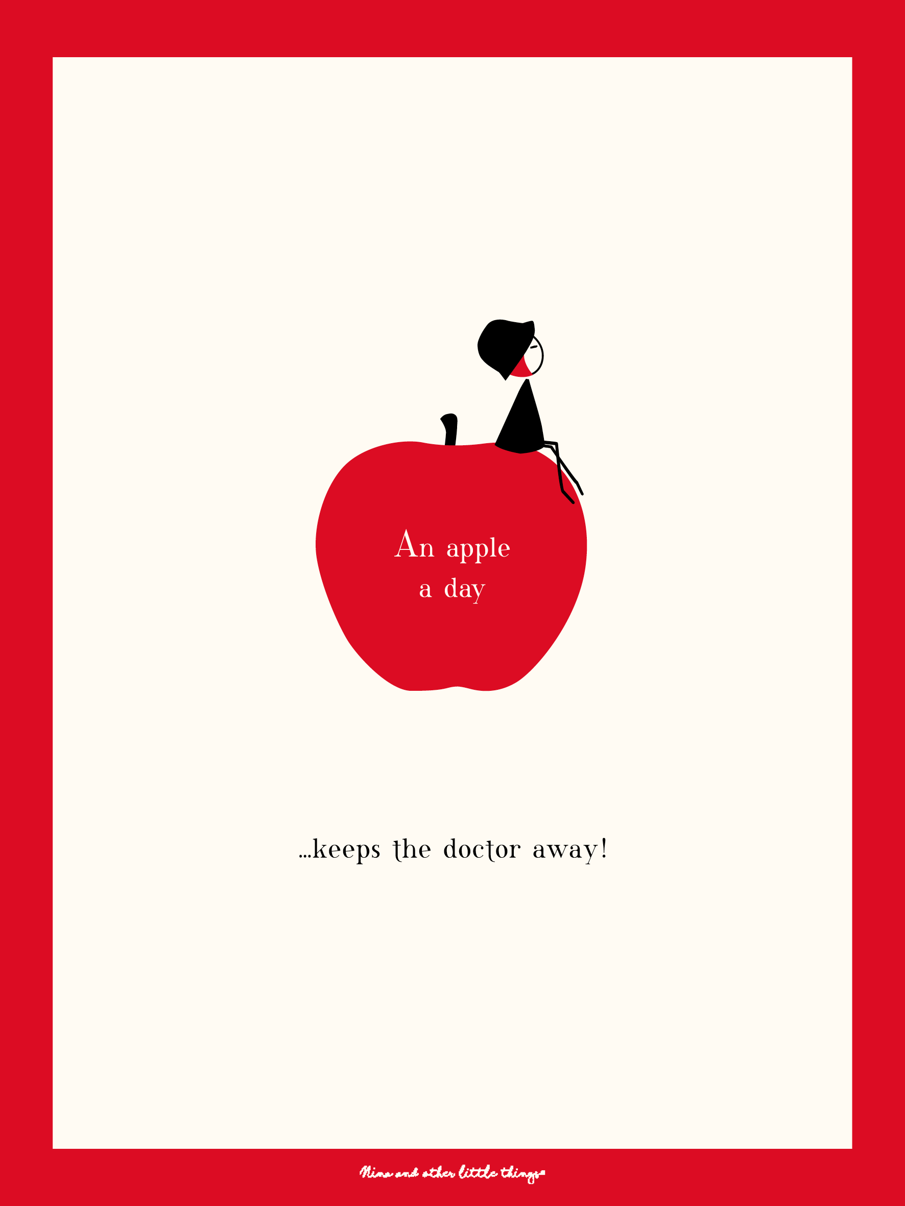 Affiche NINA » An apple a day …keeps the doctor away ! » Existe en 30×40 cm et 40×60 cm. Imprimée en France sur un papier premium.